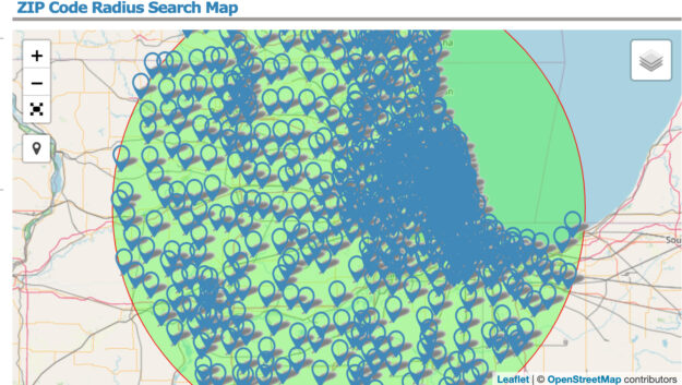Map of the USA where you can specify a point and a radius to search within and return all the ZIP codes found inside that radius. https://www.freemaptools.com/find-zip-codes-inside-radius.htm
